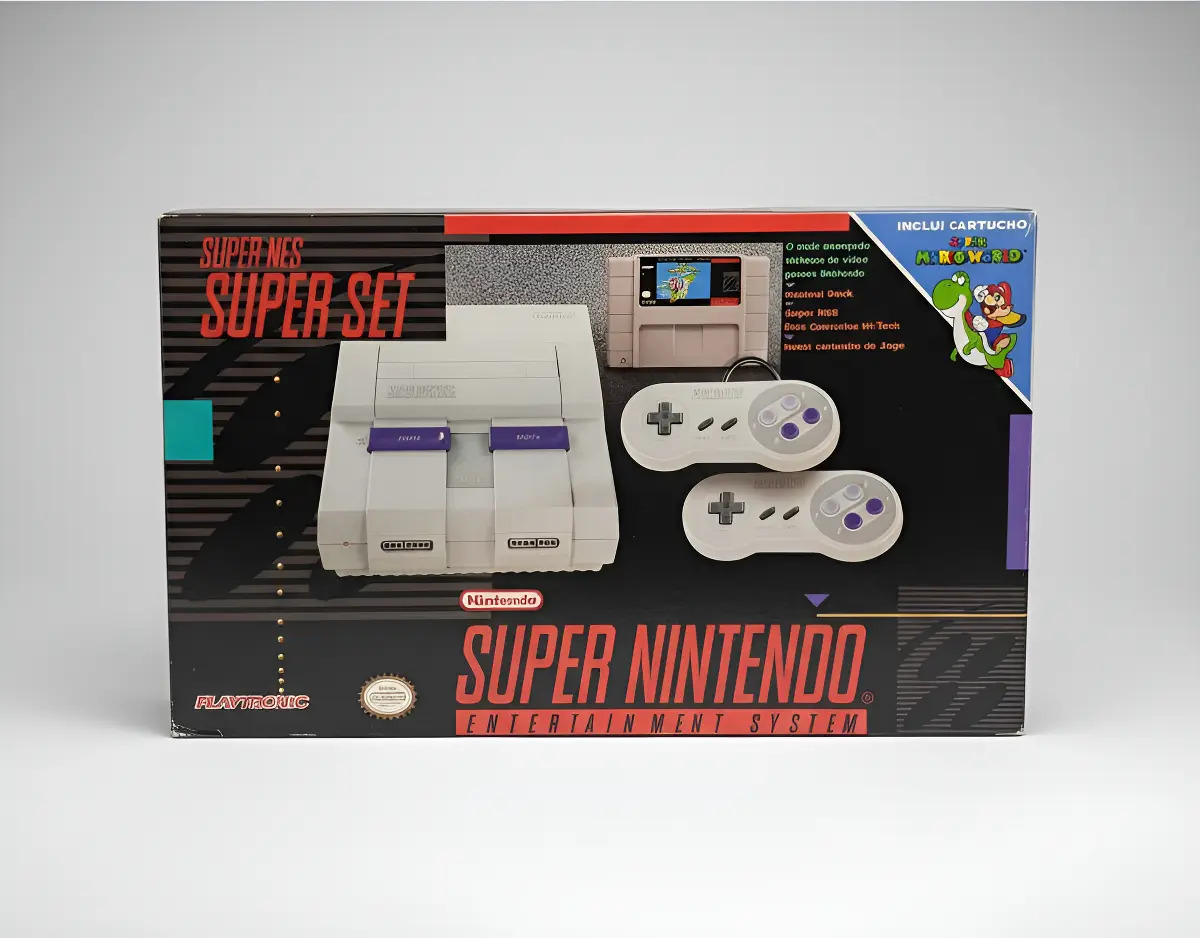 NintendoConsole Super Nintendo Fat com 2 controles e Super Mario World